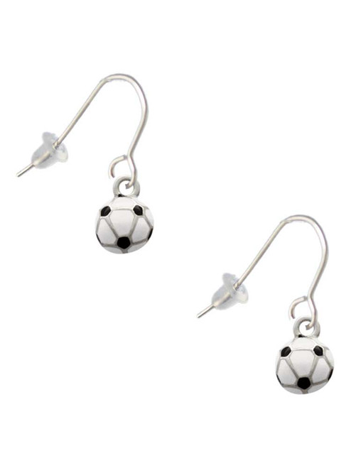 Silver Tone Mini Enamel Soccerball French Earrings. Charm size is approx. 0.44 x 0.33 x 0.14 inches (HxWxD) including loop. Stainless Steel 11mm fishhook. Comes with small rubber earnuts. Also available for non-pierced ears. PLEASE NOTE: Our products are lead safe, but are not intended for children 14 years and younger.