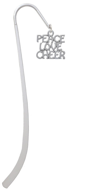 Imitation Rhodium Plated Peace, Love, Cheer Charm Bookmark. Charm size is approx. 0.76 x 0.74 x 0.07 inches (HxWxD) including loop. Silver Plated Bookmark is 5 inches long. Great Bible Gift or Torah Gift. Also available as a necklace, and bracelet. PLEASE NOTE: Our products are lead safe, but are not intended for children 14 years and younger.